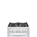 Тип конфорок: газовые • Рабочая поверхность: закаленное стекло • Тип духовки: газовая • Размеры (ШxВxГ): 600x850x600 мм • Цвет: белый • Газовые конфорки: всего - 4 • Объем духовки: 52 л • Гриль: есть • Газ-контроль духовки: есть • Очистка духовки: традиционная • Подсветка: есть • Вертел: есть • Тип управления: механическое • Переключатели: поворотные • Таймер: звуковой, с отключением