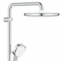 Устройство: душевая система • Смеситель: термостатический • Ручной душ (душевая лейка): размер 100 мм, настройки 2 шт • Верхний душ (тропический): размер 250 мм, настройки 1 шт • Комплектация: ручной душ, верхний душ, смеситель, стойка, шланг, крепление ручного душа