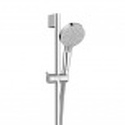состоит из: ручного душа, душевой штанги, душевого шланга, слайдера; размер душевого диска: 100 мм; тип струи: Rain, IntenseRain; регулировка типа распыления поворотом распылительного диска; угол наклона держателя для ручного душа регулируется на 45 °; максимальный расход при 3 барах: 15,2 л / мин; диаметр душевой штанги: 22 мм; длина душевой стойки: 669 мм; профильная труба-стойка: круглая; расстояние между точек сверления 625 мм; настенные опоры из пластика.