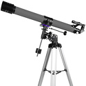 Комплектацияоптическая труба телескопа, окуляр SR4 мм, окуляр H12,5 мм, окуляр H20 мм, оборачивающий окуляр 1,5х, линза Барлоу 3х, диагональное зеркало 90°, оптический искатель 5х24, экваториальная монтировка EQ2, ручки тонких движений, штанга противовеса, противовес, крепежное кольцо, алюминиевая тренога с полочкой для аксессуаров, инструкция по эксплуатации и гарантийный талон