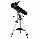 Экваториальный рефлектор Ньютона для изучения объектов дальнего космоса. Диаметр главного зеркала – 130 мм. Телескоп комплектуется двумя окулярами: 25 мм и 10 мм. Оптическая труба устанавливается на экваториальную монтировку EQ2. Монтировка снабжена механизмами тонких движений по обеим осям. Высоту алюминиевой треноги можно регулировать.