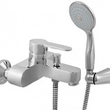 Назначение: ванна+душ • Конструкция: однорычажный • Монтаж: вертикальный • Клапан: керамический • Материал: латунь, покрытие - хром • Подводка: жесткая • Монтажные отверстия: 2 отверстия • Форма излива: традиционная • Душевая лейка в комплекте: есть • Держатель для душевой лейки: настенный держатель • Аэратор: есть • Эксцентрики в комплекте: есть • Донный клапан в комплекте: есть